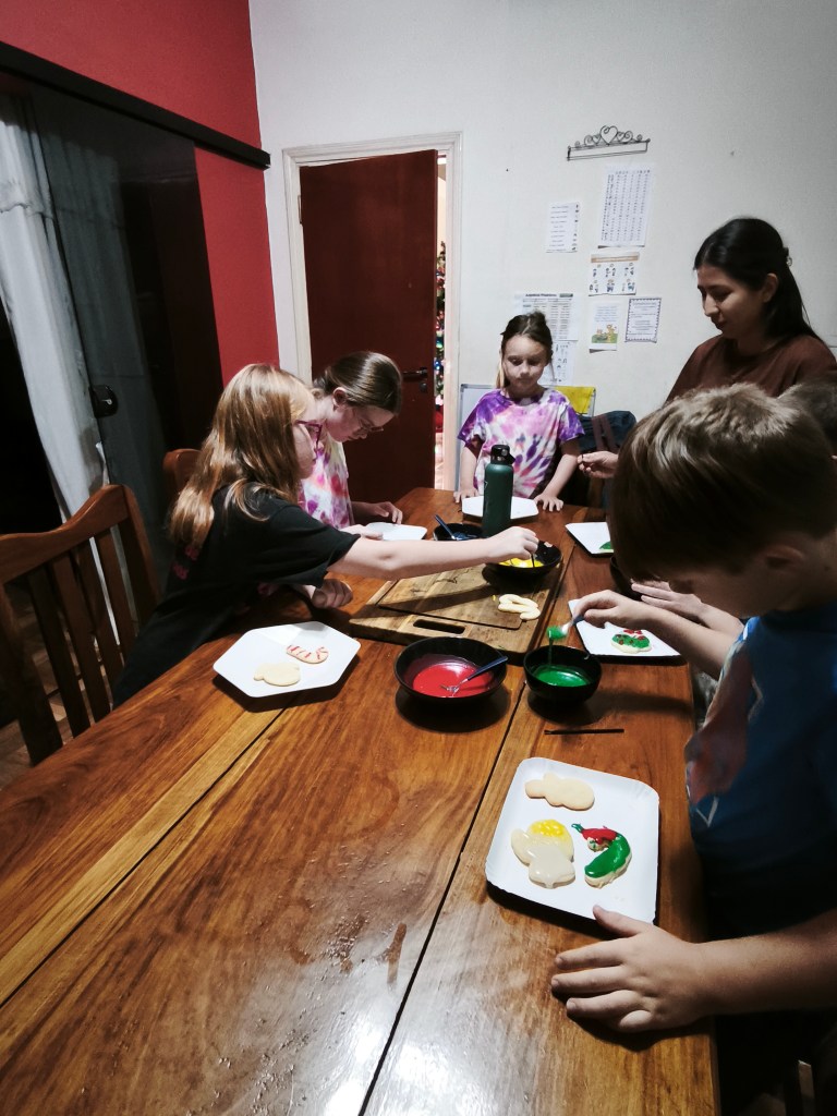 The kids are setting in nicely to a few weeks off from school. Kathleen is able to connect with more of the teachers because they are free in the mornings. The girls have helped with making many Christmas treats and Temperance has been hard a work making Christmas gifts. As many of you are trying to keep warm, we are working hard to cool off these days, so often the kids will throw on their swimsuits and go play in the water out back. It is nice to have all the laughter around the house and to hear the kids making great memories. We even spent one afternoon making gingerbread houses and it was a blast!